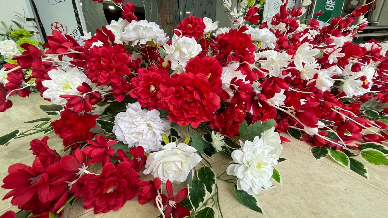 BẢNG HOA LỤA ĐỎ TRẮNG 1.5 m