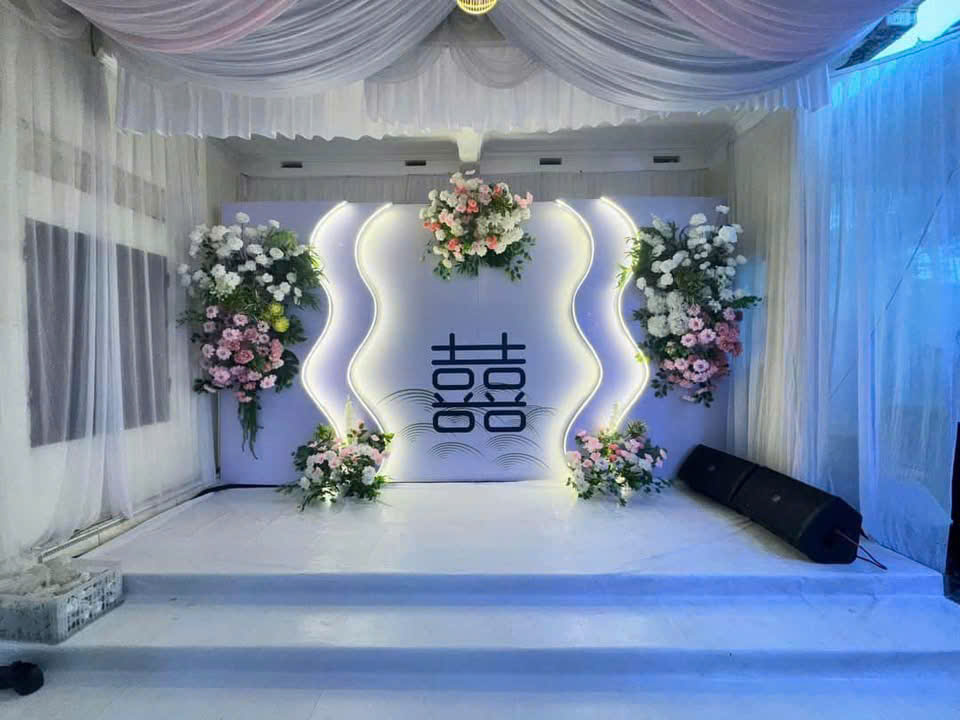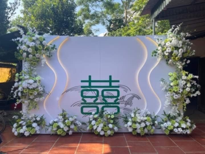 - Chất liệu : Alu bóng 2 ly, khung sắt 14-16, hoa lụa (3-5 loại) cắm theo tông màu cổng.