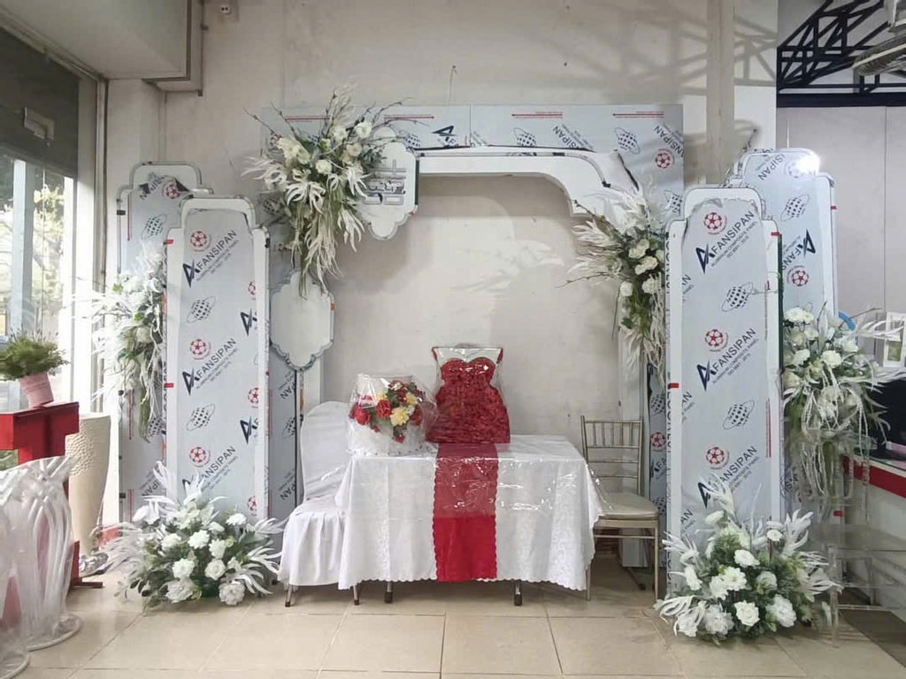 - Chất liệu : Alu bóng 2 ly, khung sắt 14-16, hoa lụa (3-5 loại) cắm theo tông màu cổng.