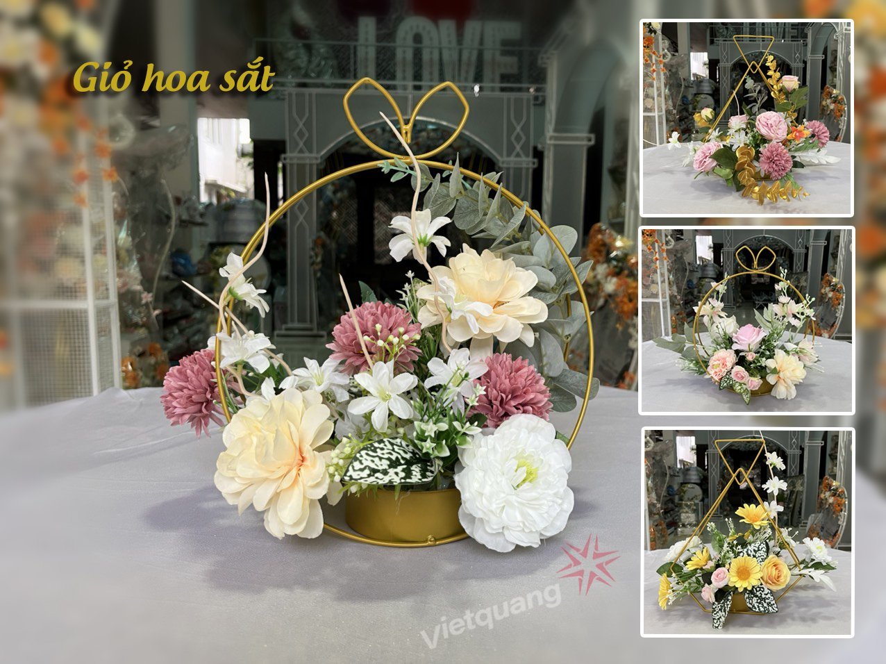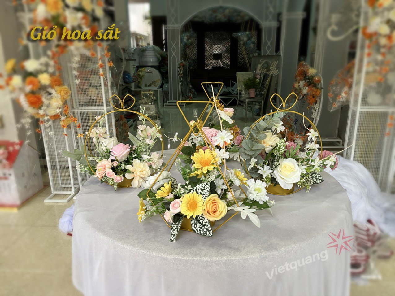 GIỎ HOA SẮT TAM GIÁC DECOR, TRANG TRÍ
