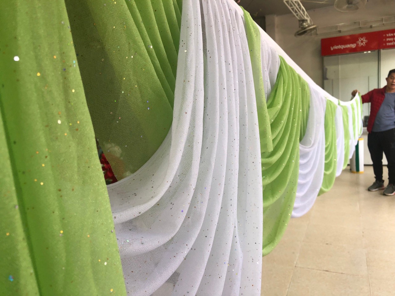 - Chất liệu : Vải nhúng kim tuyến, màu xanh cốm (có nhiều màu lựa chọn).