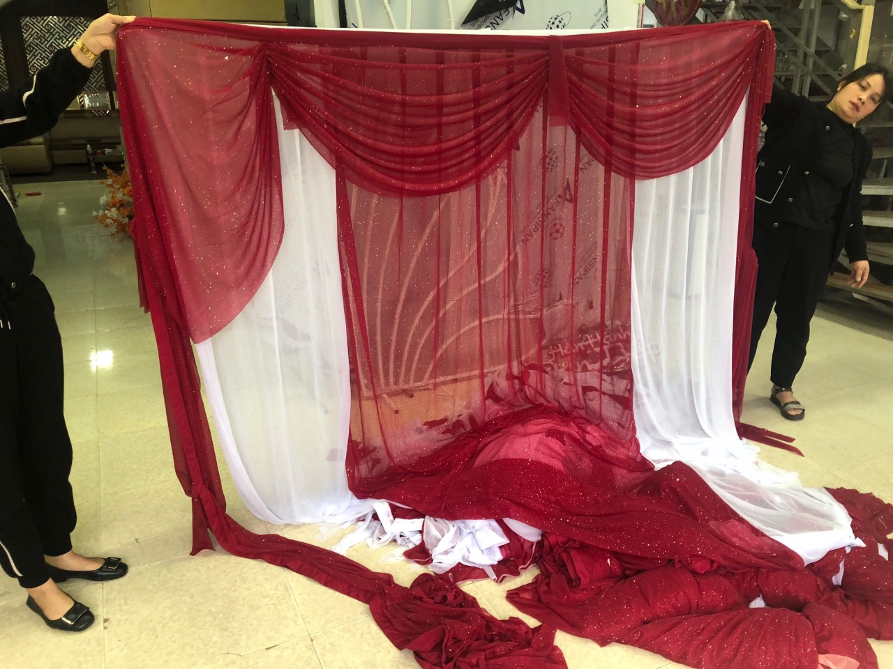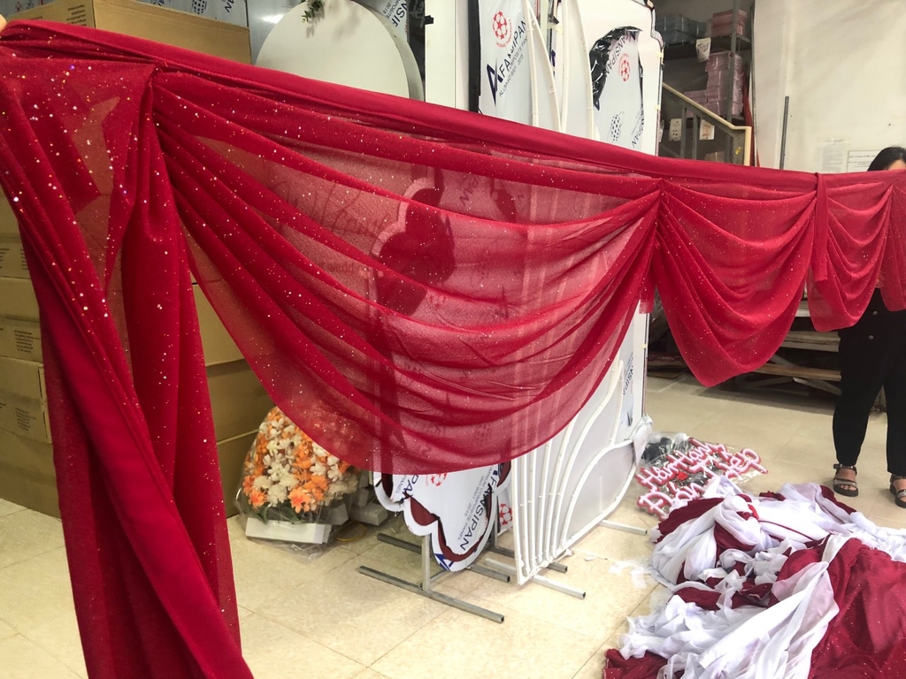 - Chất liệu : Vải nhúng kim tuyến, màu đỏ đô (có nhiều màu lựa chọn).