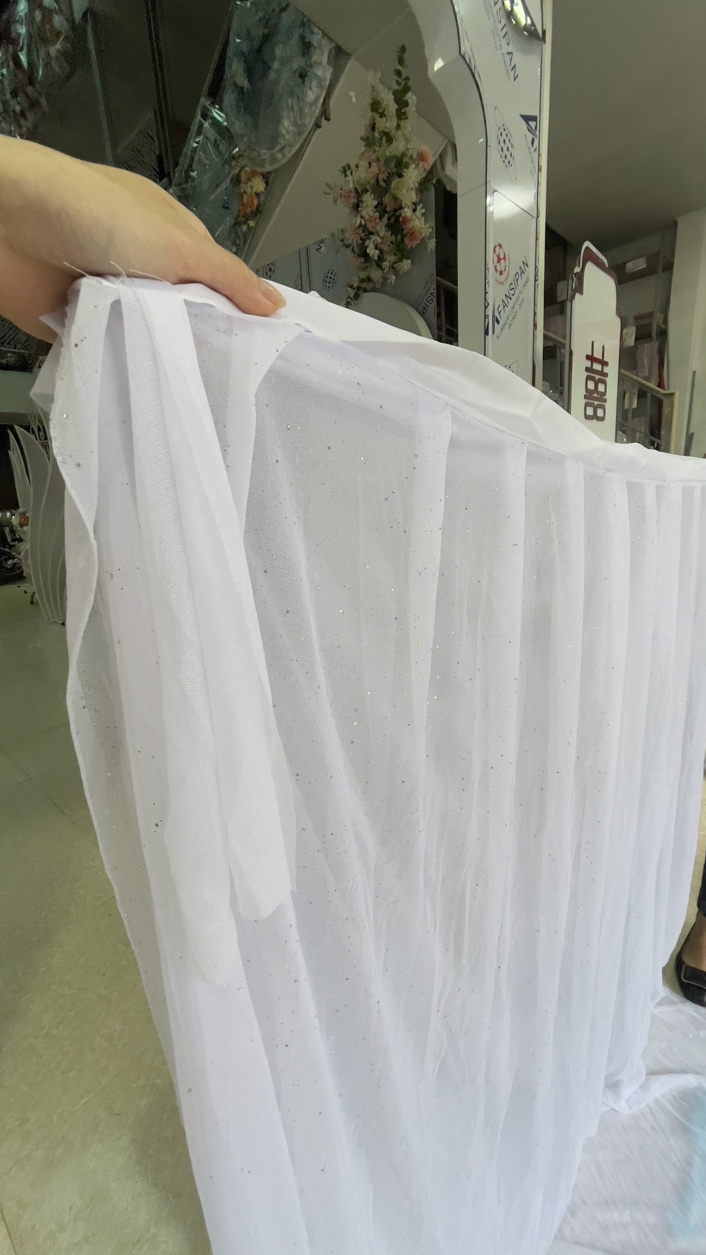 - Chất liệu : Vải nhúng kim tuyến, màu trắng (có nhiều màu lựa chọn).