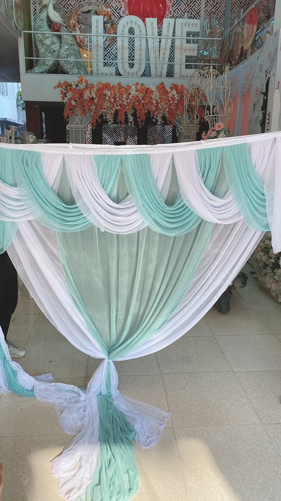- Chất liệu : Vải nhúng kim tuyến, màu xanh ngọc trắng (có nhiều màu lựa chọn).
