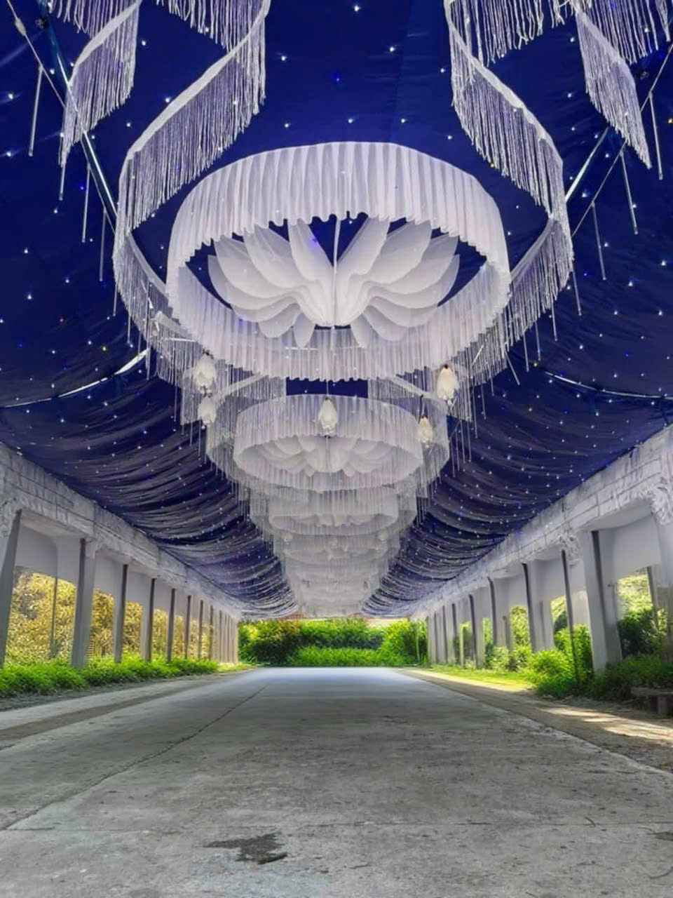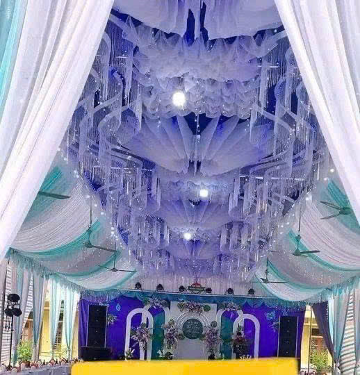 TRẦN HOA MÂY SỢI KIM TUYẾN NỀN XANH
